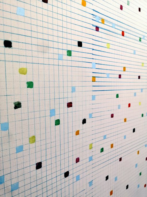0 4 解像度の低い絵が出来ました。 これを後2枚作ります。 180×240mm #モザイク #ドット絵 #絵画 #油彩画 21/05/10 19:24