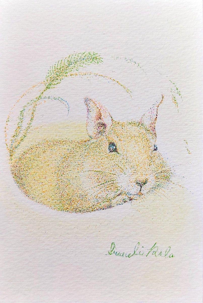デグー #ボールペン #色鉛筆 #点描 #デグー #動物