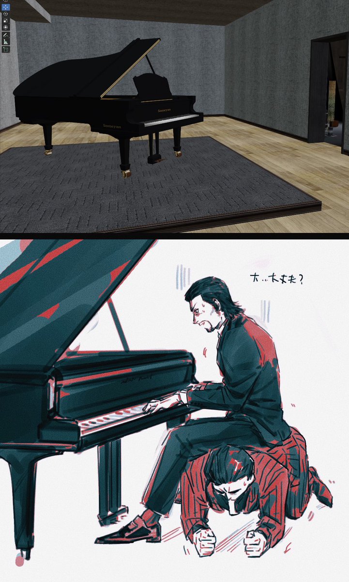 Do you guys know that in Mine’s office there is a grand piano but no bench? I don't think Mine probably plays the piano, but what about when Daigo wants to play it?