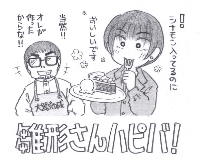 雛形さん、ハッピーバースデー! 休載イラストにちなみ、今年はアップルパイをご用意いたしました! 土屋田さんが銀行に残ったのは、雛形さんの死を受けて何がしか銀行に為したいことがあるからだと思っています… #雛形春人誕生祭2023 #ジャンケットバンク
