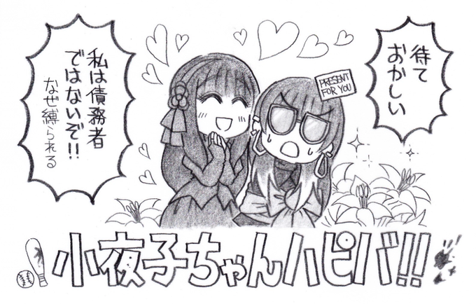 小夜子ちゃん、ハッピーバースデー! 小夜子ちゃんにはケーキより、こちらのほうが喜んでくれるかな、と思って描きました! 城之内主任とお幸せに!! 人権?今日は忘れましょう!! #森小夜子誕生祭2023 #ジャンケットバンク