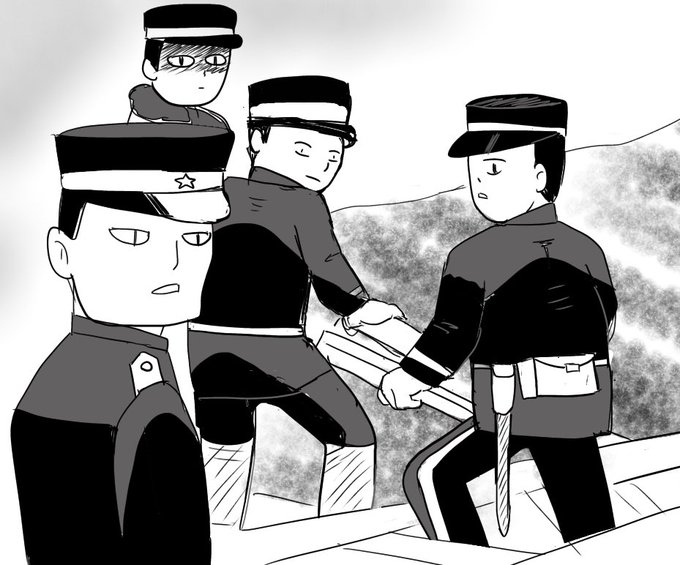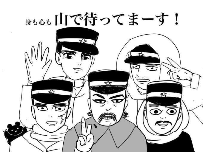 #ゴールデンカムイ版深夜の真剣お絵描き60分一本勝負 【お題】第七師団 家の下敷きになったバアちゃん(キロの嘘)を助けようとしたり、道を塞いだ木(ひじいじの策)をどかそうとする第七師団の兵隊さんたちはいい人だ。