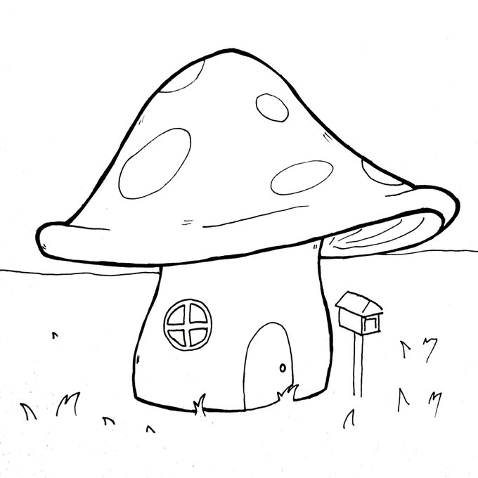 Inktober Day 17: Mushroom Mushroom house! Mushroom house! #inktober #inktober2022 #inktoberday17 #art #traditionalart #inks #mushroom #cute #fantasy #woodland