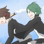 遅刻しそうな二年生ズ 🐼「あと3分!本当に間に合う!?」 🌶「余裕!!!!」 #七次元掲示板 #緑仙はやく見ろ #さ絵ぐさ