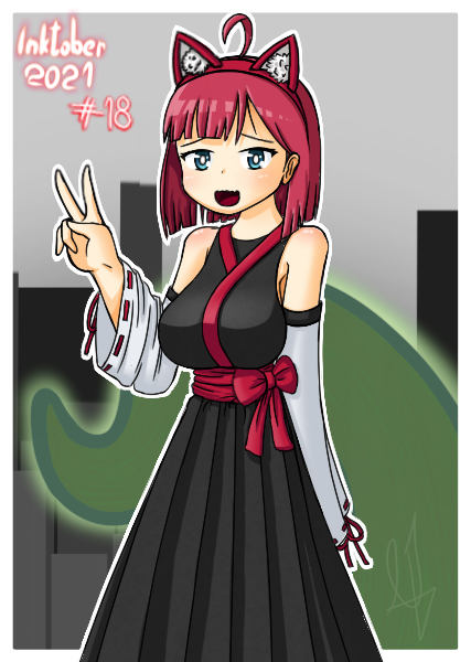And here's one of the Inktobers that I picked to digitalize, I hope you all like it. (1/4 #18), Ritsu's cosplay #inktober2021