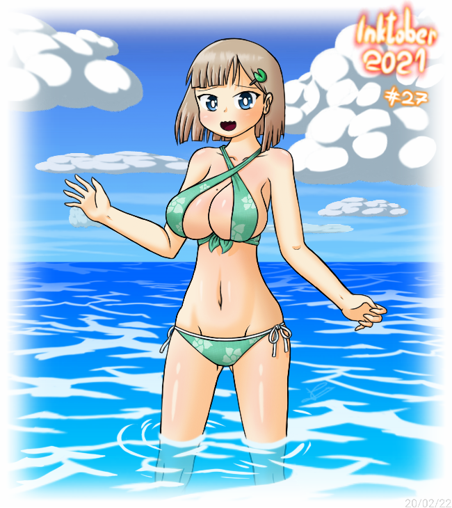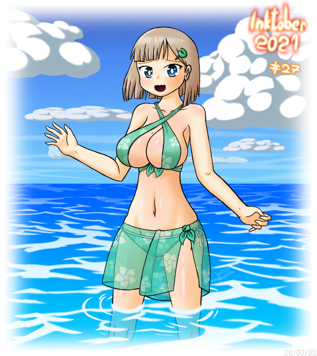 Finally here, the fourth Inktober redraw, I changed the swimsuit design and I'd like to apologise to you and myself, for taking stupidly long with this one. I really hope you all like it. (4/4 #27) Swimsuit w/ & w/o sarong #inktober2021