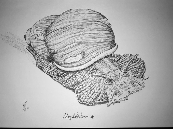 Dia 29 #inktober2021 Patch. Essa quase buga minha mente! O que desenhar para Correção, Remendo? Ai lembrei dos Megalobulimus sp! Nossos gigantes gentis tem a capacidade de fazer remendo em suas conchas, corrigido rachaduras. Isso deixa marcas de suas desventuras.