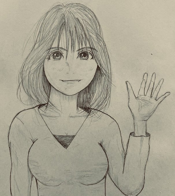 『おっはよう!』₍ᐢ⓿ᴥ⓿ᐢ₎🍀 #イラスト練習中 #鉛筆画 おてて、こないだより良い感じ⁽⁽꜀(:3꜂ ꜆)꜄⁾⁾