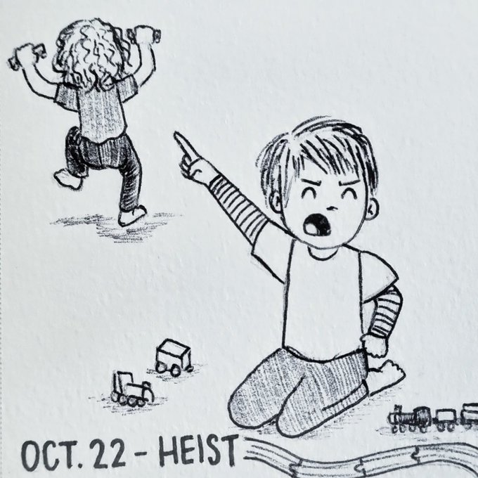 #Inktober Day 22: #Heist Her plots are never extravagant, but her speed and execution are flawless. #Inktober2022 #toddlers #kidlitart