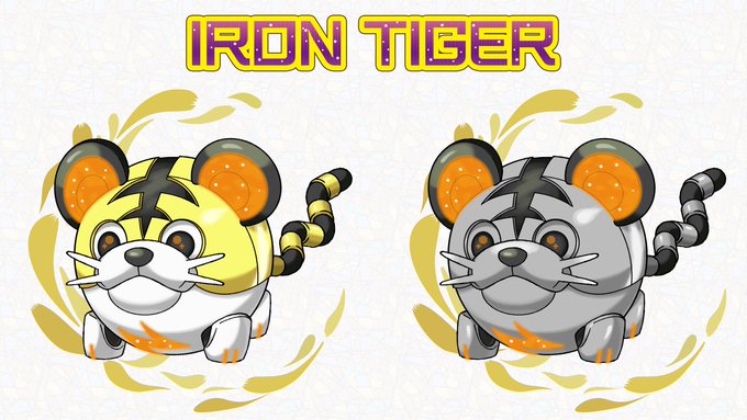 IRON TIGER (Electric/Fairy) An unusual object found in the great crater which is thought to originally have been some sort of toy or AI pet. It doesn't appear to resemble any currently discovered Pokémon...? #PokemonScarletViolet