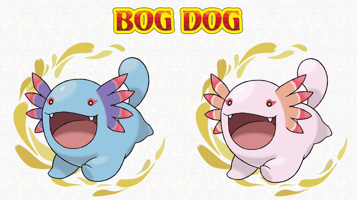 BOG DOG (Water/Poison) This amphibious creature is thought to perhaps be an ancient ancestor of both the Johtonian and Paldean Wooper families, but some researchers consider this to be a farfetched hypothesis. #PokemonScarletViolet