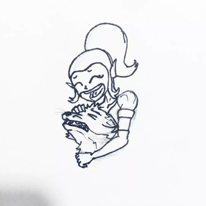 Inktober day 13: Kind Rocío Demoniac hugging Zocox Foxtrot #inktober2022 #kind #fox #lafamiliademoniac