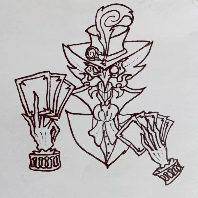 Inktober day 20: Bluff Machileto Enjuto, The Puppeteer Master #inktober2022 #bluff #cards #lafamiliademoniac