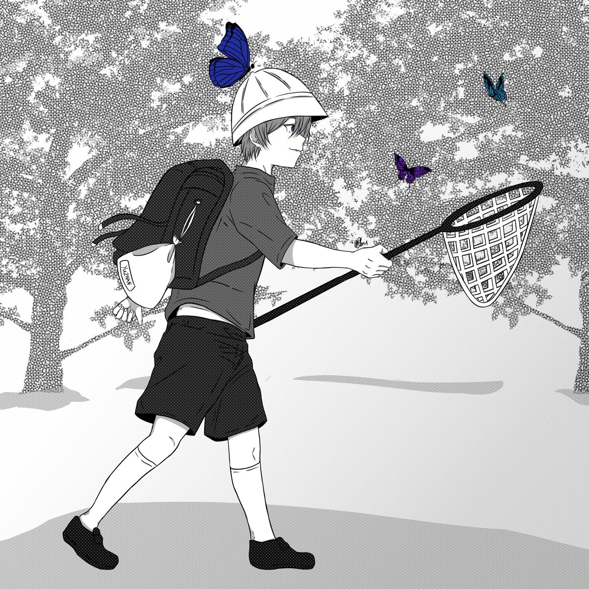 Inktober Day 5. Prompt "Hobby" . OC used: Yuznan - Over time ive drawn Yuznan with a butterfly present, trying to cement his love for them. Here I try to show his early days going out and catching them. - #inktober2021 #oc_tober2021 #animeart #digitalart #drawing #illustration