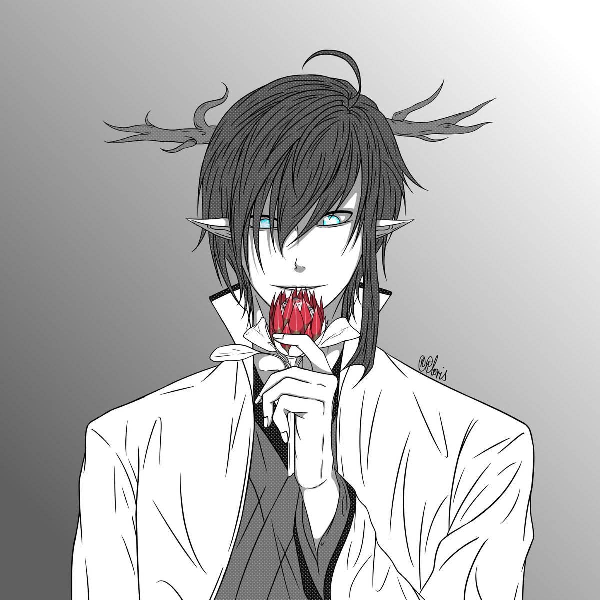 Inktober day 11. Prompt "Flower" . Oc used: Yasper (New) - Yasper is part of a different faction in my universe of OC's. The flower he is holding is a Protea. - #inktober2021 #inktoberday11 #illustration #digitalart #drawing #animeart #oc_tober2021