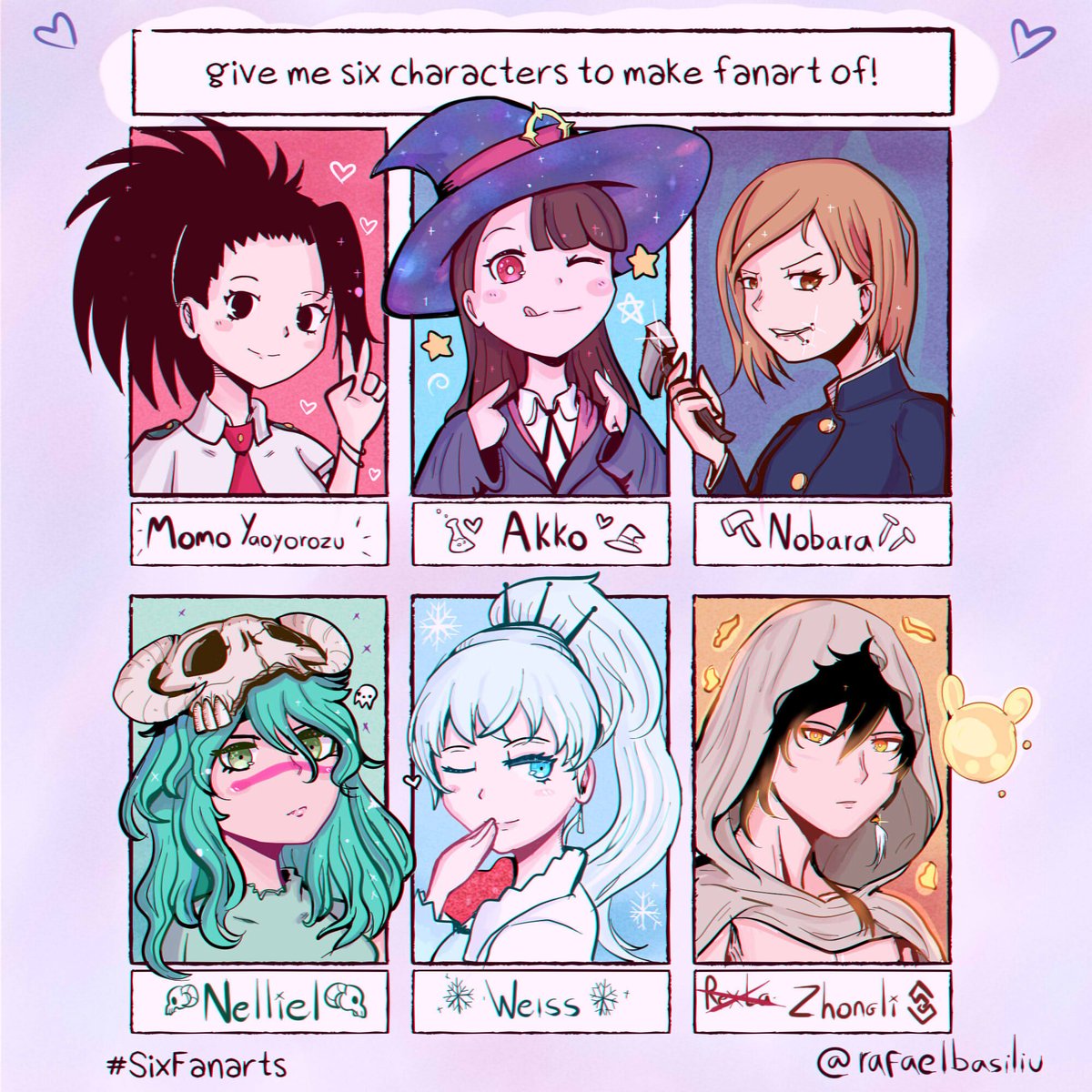 Obrigado a todo mundo que mandou personagem/curtiu/qualquer coisinha UwU Se seu personagem não apareceu, relaxa, eu vou fazer mais em breve ^^ #SixFanarts #SixFanartsChallenge