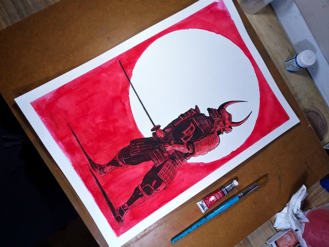 Gouache and Ink - 👹🇯🇵 . DM me for enquiries. . #daredevil #mattmurdock #watercolor #aquarela #aquarelle #daredevilcomics #marvel #ink #inked #red #demolidor #demonio #daredevilnetflix #comics #comicbook #bandedessinee #dessin #marvelcomics #illustration #gouache #samurai
