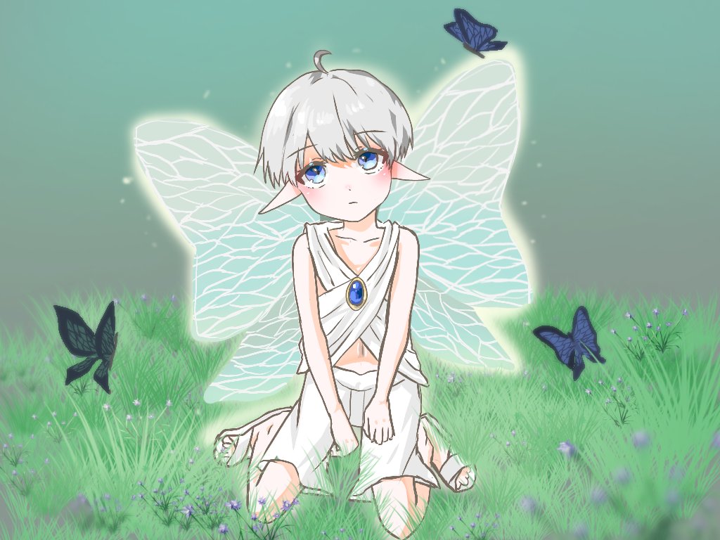 #美少年版深夜の真剣お絵描き60分1本勝負 2月、3月お題「妖精「喋々」「白髪青目」
