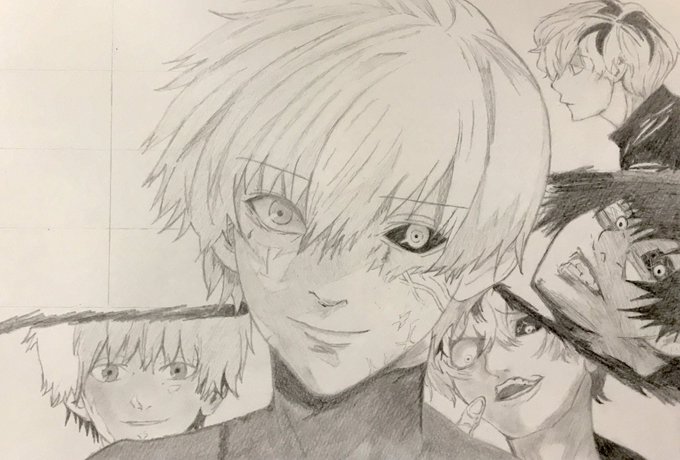 あと2人〜で完成!集中しなければ(゜д゜) #絵師さんと繋がりたい #絵好きと繋がりたい #模写イラスト #東京喰種