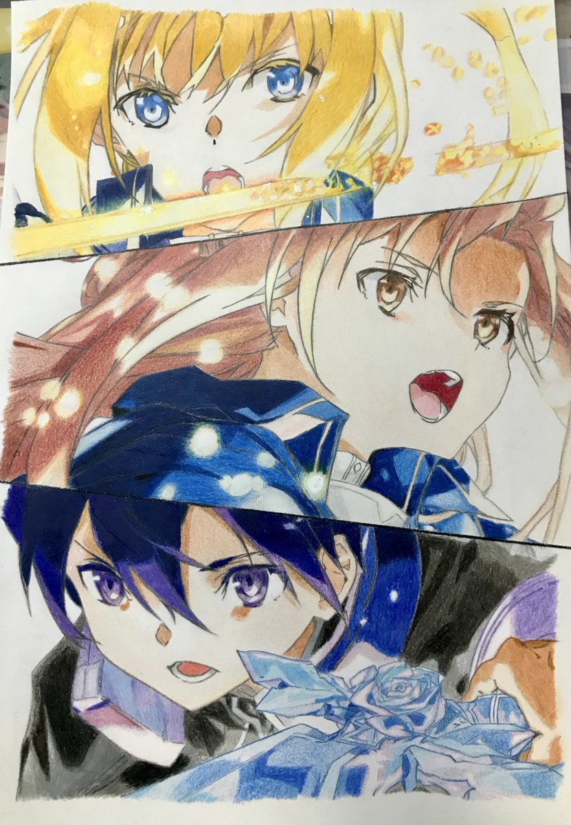 UW3人組描き終わりましたー!!!! 時間はかかったけど自信作なんで拡散お願いします!!😆😆😆 #模写 #イラスト #SAO