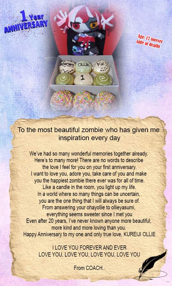 #1stAnniversOLLIE #graveyart To the most beautiful zombie who has given me inspiration every day: We’ve had so many wonderful memories together already. Here’s to many more! There are no words to describe the love I feel for you on your first anniversary.