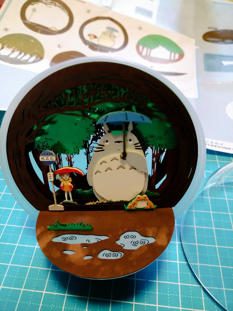一応完成✨ 地面の裏表の貼り付け逆にして失敗したけど雨降りの泥の地面ぽくなったから良しとするかな #トトロ #ペーパークラフト #ペーパーシアター #カプセル #老眼鏡使わないとよく見えない今日この頃