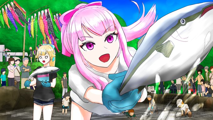 4 27 祭部門に応募するため、私の地元のお祭りで描いてみました! タイトルは、 「倒れ行く田中/はたかれる鈴木」です! #ヒメヒナアート #ヒメヒナ初夏のクソ神祭2021 21/05/26 20:00