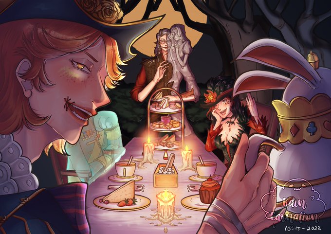"𝐎𝐮𝐫 𝐀𝐥𝐢𝐜𝐞 𝐢𝐬 𝐜𝐨𝐦𝐢𝐧𝐠 𝐬𝐨𝐨𝐧!!! 𝐋𝐞𝐭'𝐬 𝐬𝐭𝐚𝐫𝐭 𝐚 𝐬𝐩𝐞𝐜𝐢𝐚𝐥 𝐭𝐞𝐚 𝐩𝐚𝐫𝐭𝐲!!!" [𝐖 𝐄 𝐋 𝐂 𝐎 𝐌 𝐄, 𝐀 𝐋 𝐈 𝐂 𝐄!] #IdentityV #IdentityVfanart #identityVイラスト #halloween