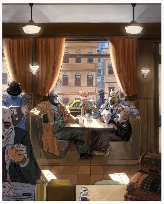 #Blacksad , Weekly and my OC Arthur hanging out at a diner ✨✨✨ #illustration #fanart #originalcharacter