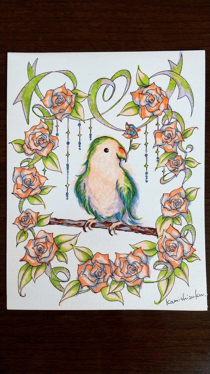 小鳥と薔薇🐤✨ 皆様ご無事でありますように🍀 #イラスト