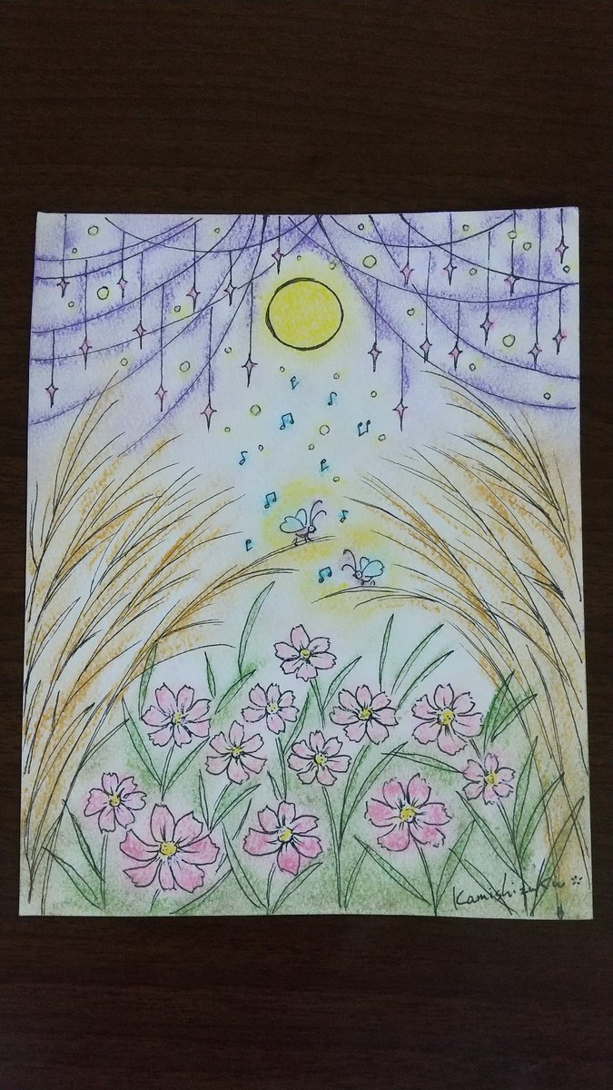 0 7 月夜の音楽会🎵 #中秋の名月 #イラスト 22/09/10 13:27