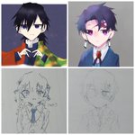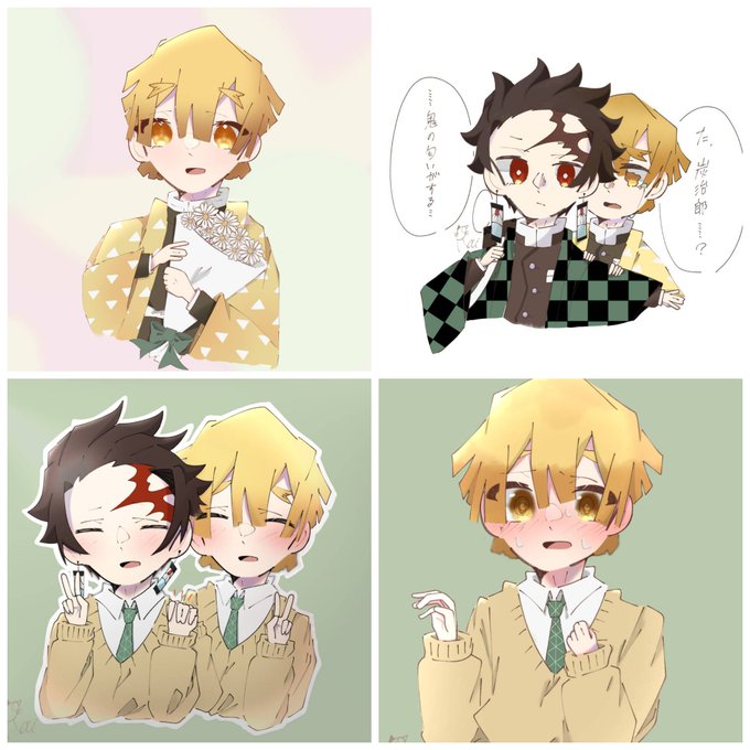 1 15 #一年間で絵が上達してるか見てみましょう 左の我妻は見ての通り去年のクリスマスあたりですね 21/11/21 16:54