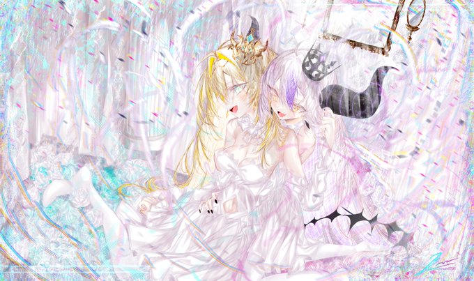 沢山の反応ありがとうございます、恐れ入ります🙇♂️ こちらは撮影中に二人共照れてしまったNGカットです #いろはにも絵を #laplus_artdesu #hololive twitter.com/Rainshower0705…