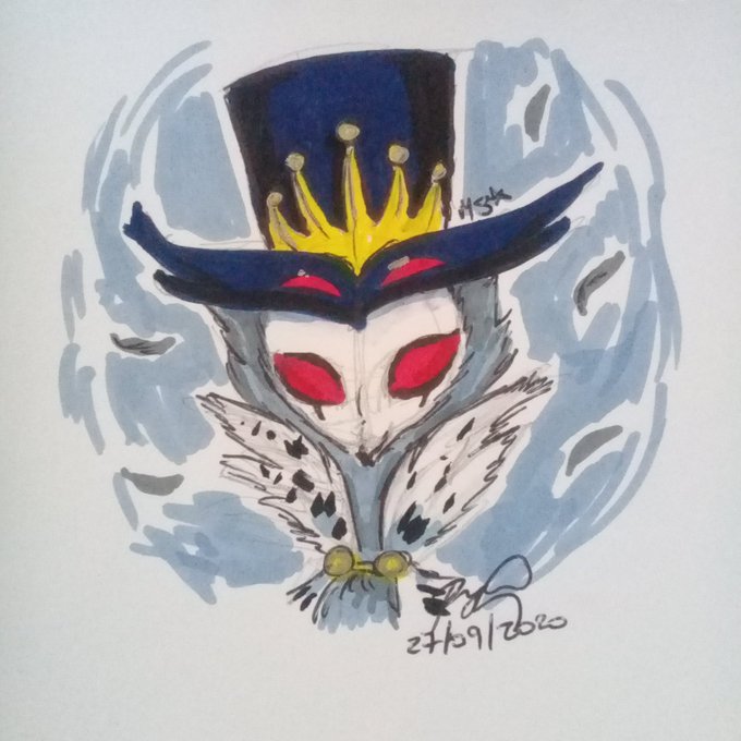 Small Stolas doodle because I LOVE HIM like oh Lord he is so cute and royal and aaahhhh #markers #drawtober #inktober2020? #helluvaboss @SpindleHorse