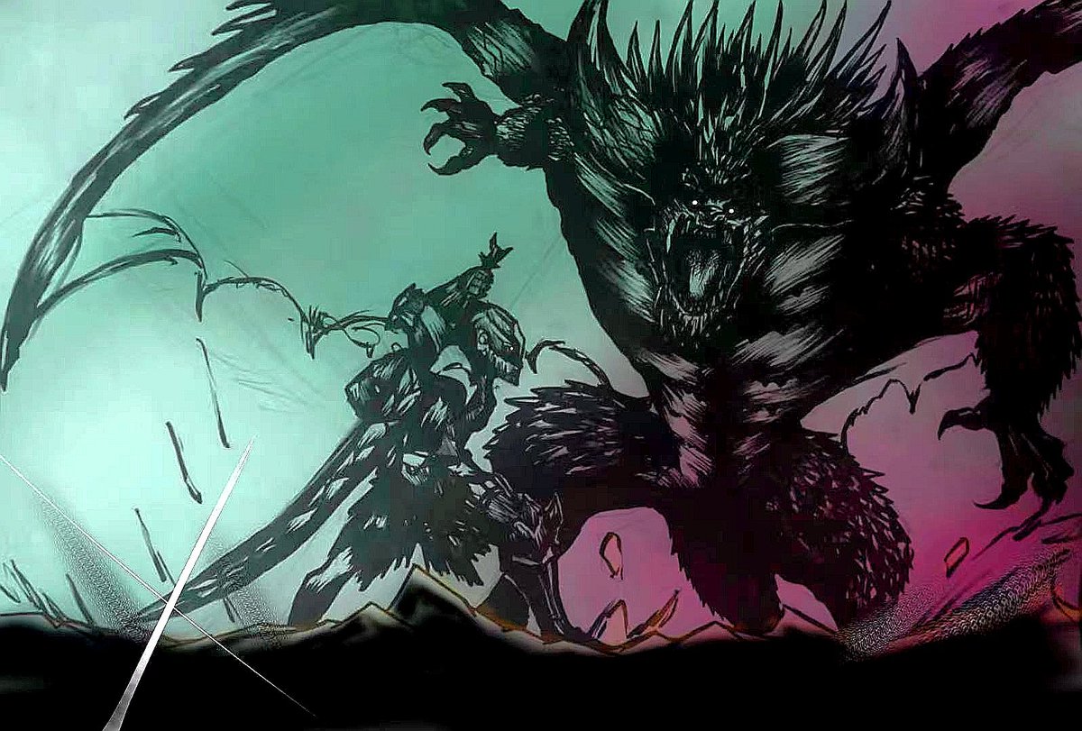 #MH版深夜のお絵描き60分一本勝負 お題「ラージャン」 最後までイメージした構図で描けず苦戦😥