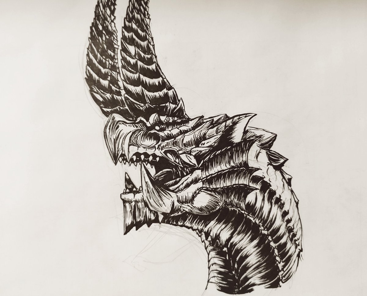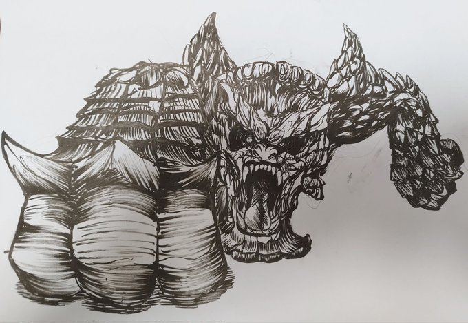 #MH版深夜のお絵描き60分一本勝負 お題「シャガルマガラ」 マガラ系は描くの3回目かな