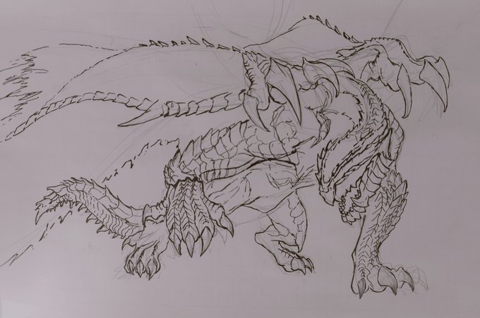 23 102 #MH版深夜のお絵描き60分一本勝負 お題「ゴア・マガラ」 誰か色塗ってくれー 22/07/31 22:58