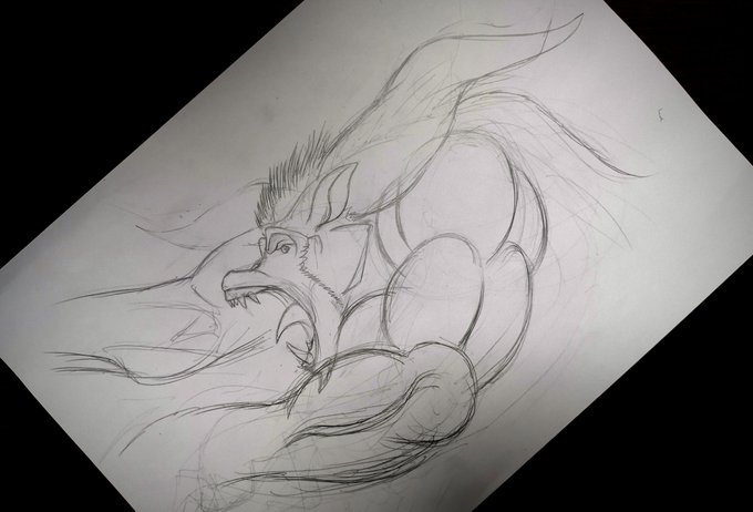 11 38 #MH版深夜のお絵描き60分一本勝負 お題「オドガロン」 久しぶりの鉛筆画!終わらず😢 22/01/23 23:05