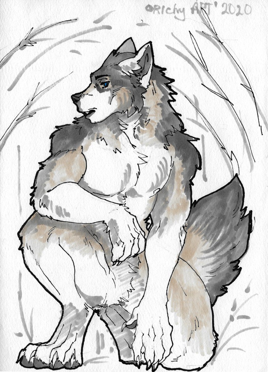 Couching #Werewolf by @QRichyArt1 This great entry for my sketchbook was drawn at NFC 2020 furaffinity.net/view/36555264/