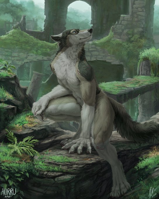 "Ruins" by @aurruu Mother Nature has a way of claiming what has been abandoned by mankind. furaffinity.net/view/49542408 #werewolf #furryart