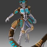"Hydro-Cyber-Werewolf" by @Zaber_Cat87 A very lovely gift of a modified version of my cyber-werewolf to explore the underwater world. furaffinity.net/view/49567614 #Cyberpunk #Werewolf #furryartwork