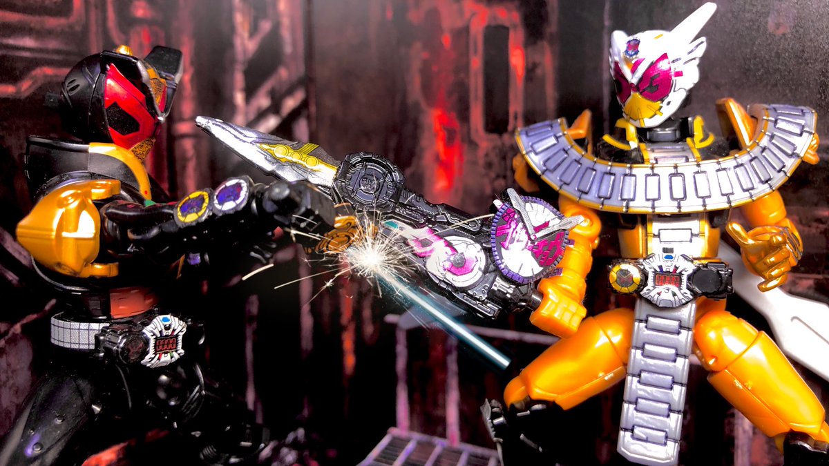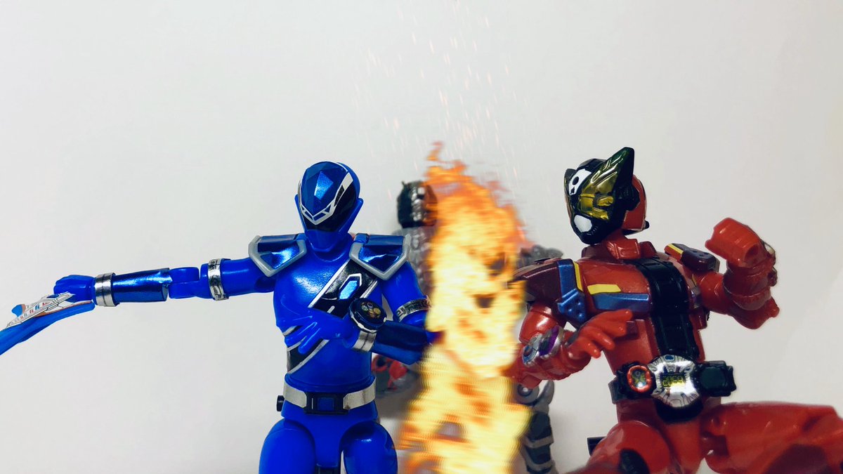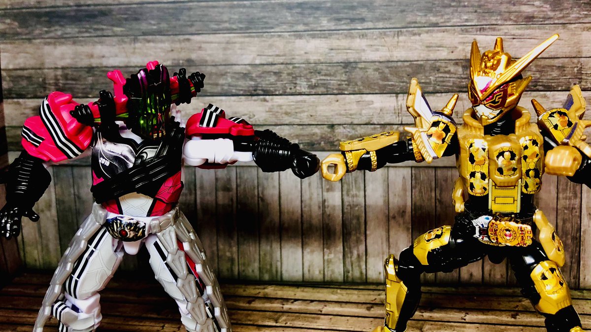 お題『過去』 [奴を倒すには過去へ行くしか…!] [俺を連れて行け!] [誰だ…] [さあ、勝負だ!] [[誰だ…]] [倒せた…] #夜のフィギュア撮影会 #オモ写 #仮面ライダージオウ #キラメイジャー #しぐたん #変だよね
