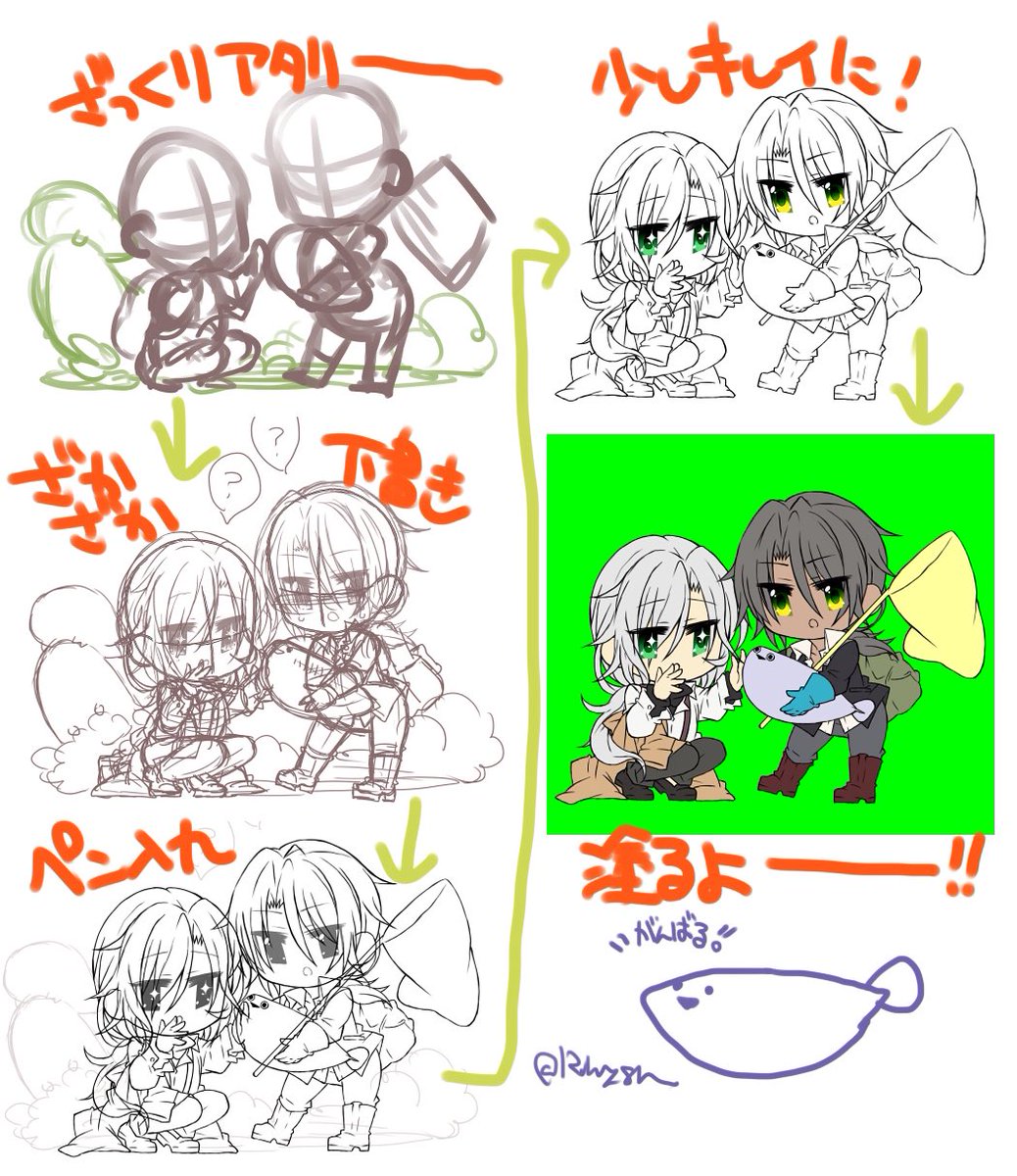 #このタグを見た人はラフ画とその完成絵を見せる ちまちまと… 完成分は夜ごろできたらいいな!🥰