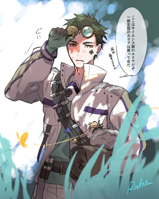 サ部のクラブウェアが、 「ガスマスクスチパン風ゴーグル立て襟謎ベルト過多ぶかぶか白ジャケットお揃いインナー(未定)バレットベルト(試験管)&腰ベルト(試験管装備)ピッタリ手袋」 で来ると思わないじゃん ロマンの塊砲撃ち込まれて死んだ