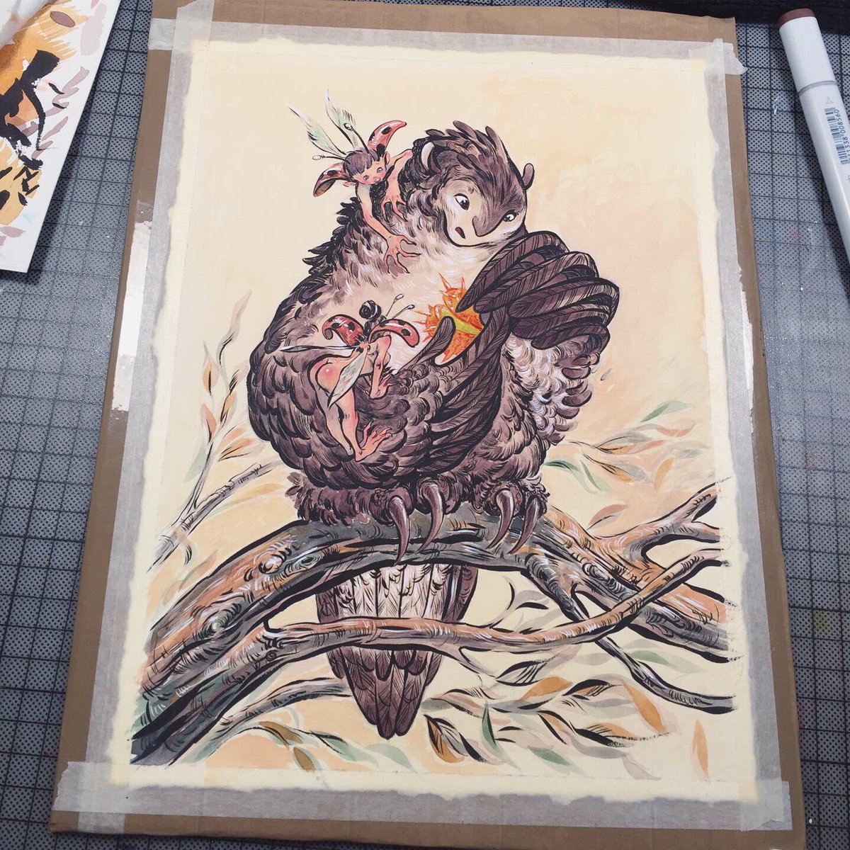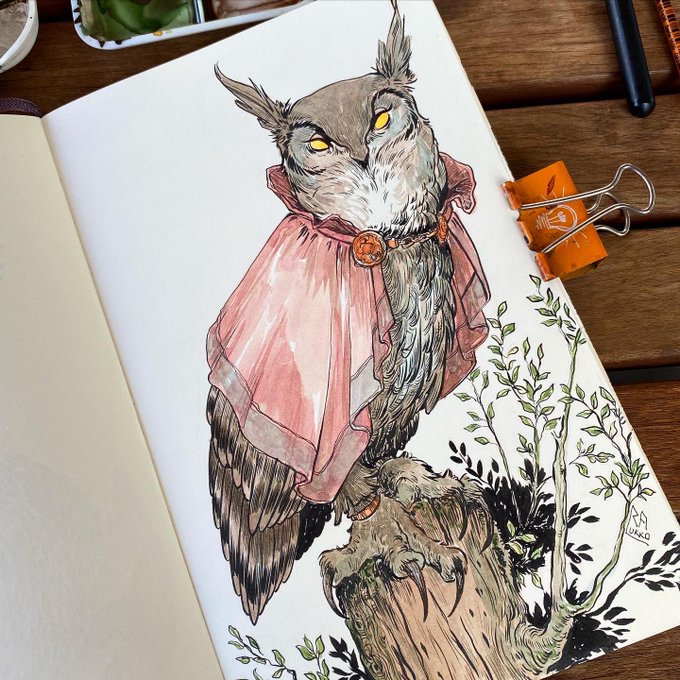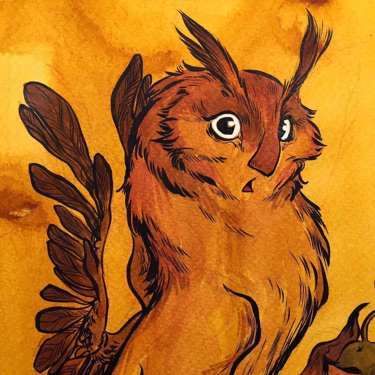 ....first #inktober #illustration done! Already started sketching for the second one 😉 stay tuned! #inktober2019 #inks #lineart #watercolor #copicmarkers #brushpen #brushpenart #traditionalart #autumn #colors #autumnvibes🍁 #october🍁 #chestnut #owls #fantasticcreatures