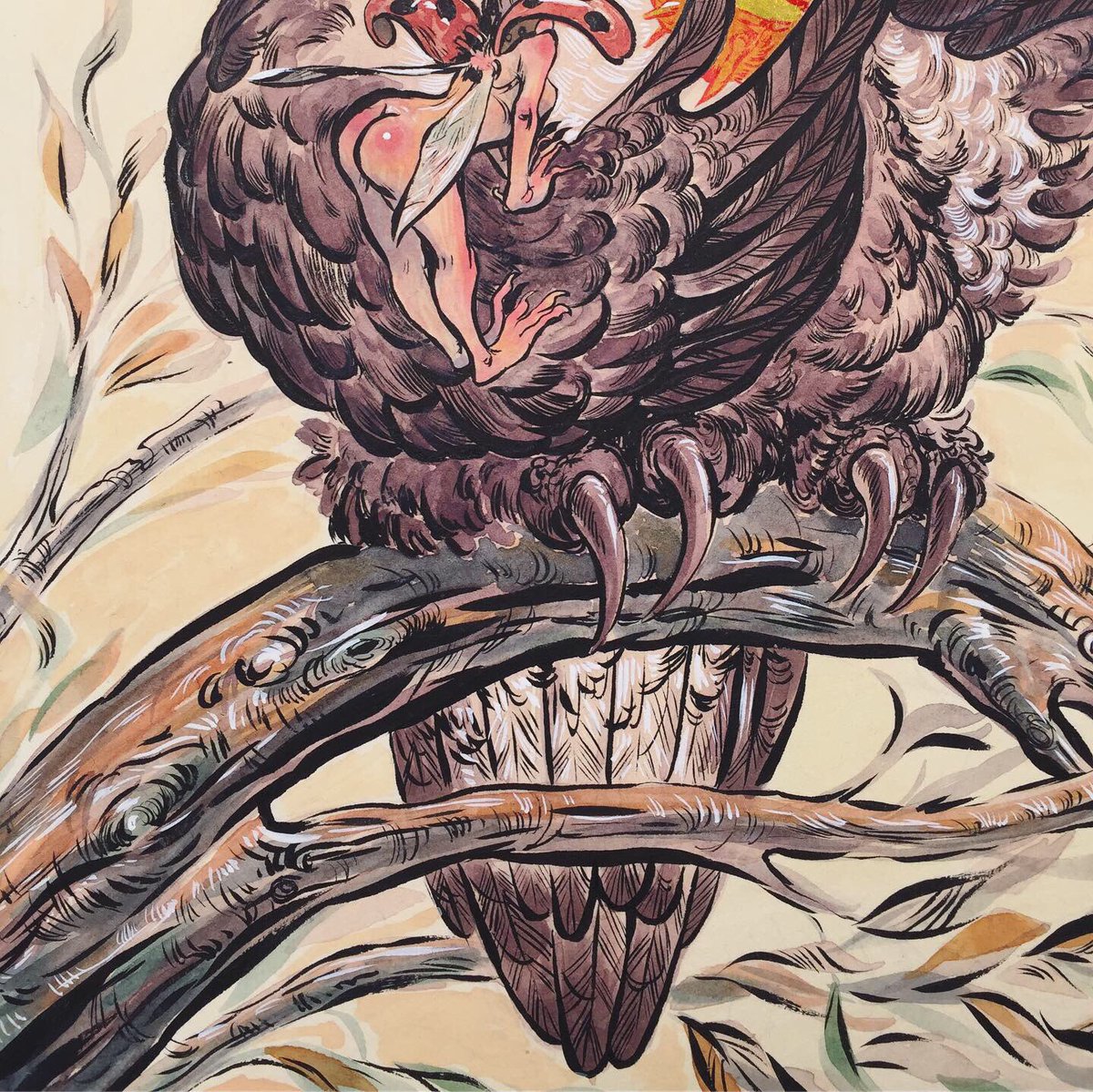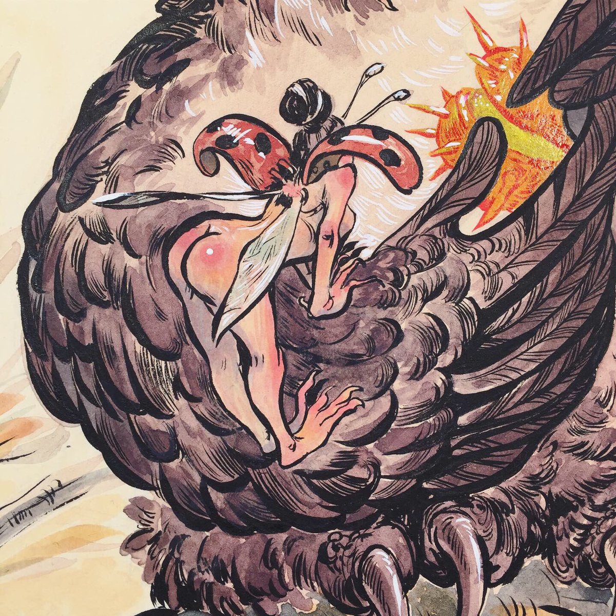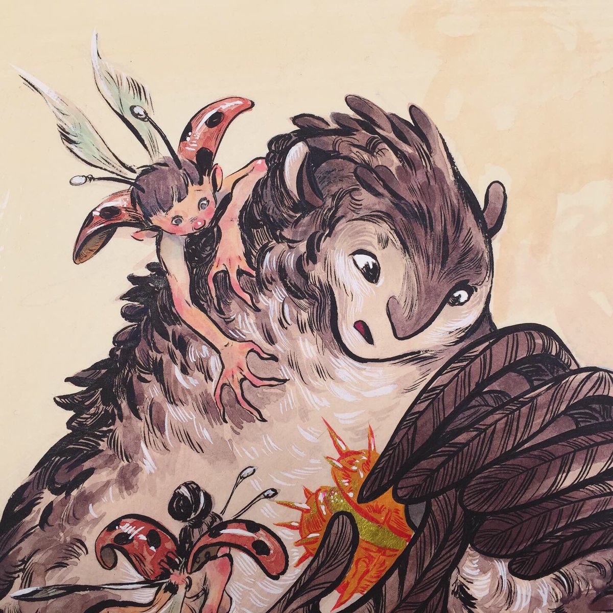 ....first #inktober #illustration done! Already started sketching for the second one 😉 stay tuned! #inktober2019 #inks #lineart #watercolor #copicmarkers #brushpen #brushpenart #traditionalart #autumn #colors #autumnvibes🍁 #october🍁 #chestnut #owls #fantasticcreatures