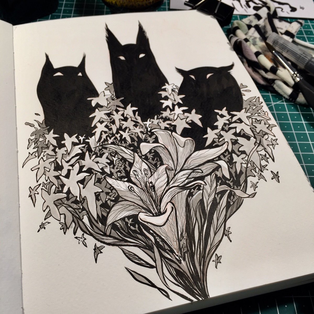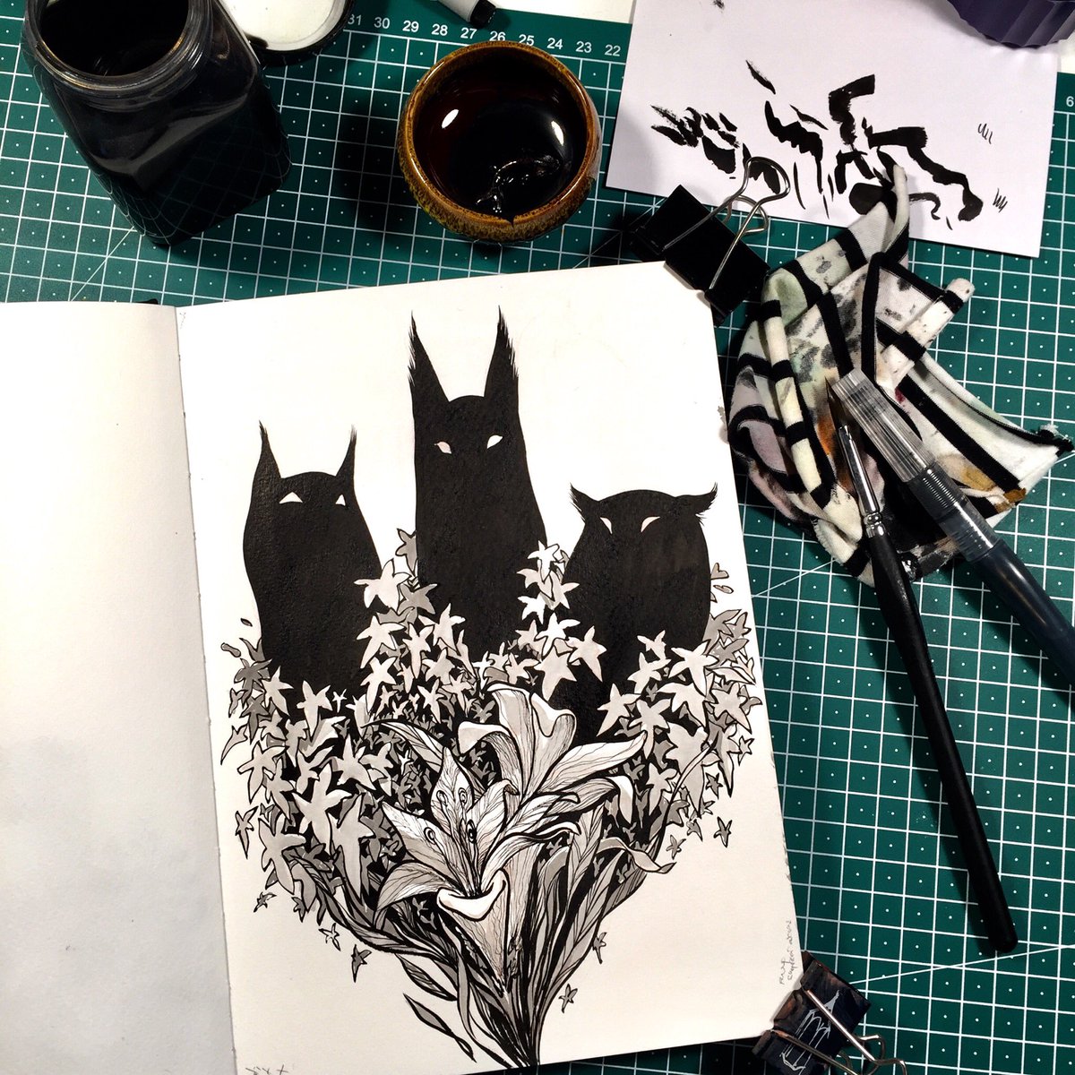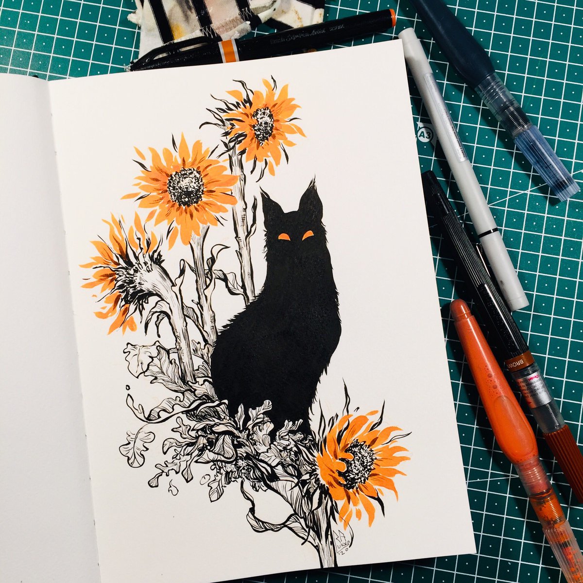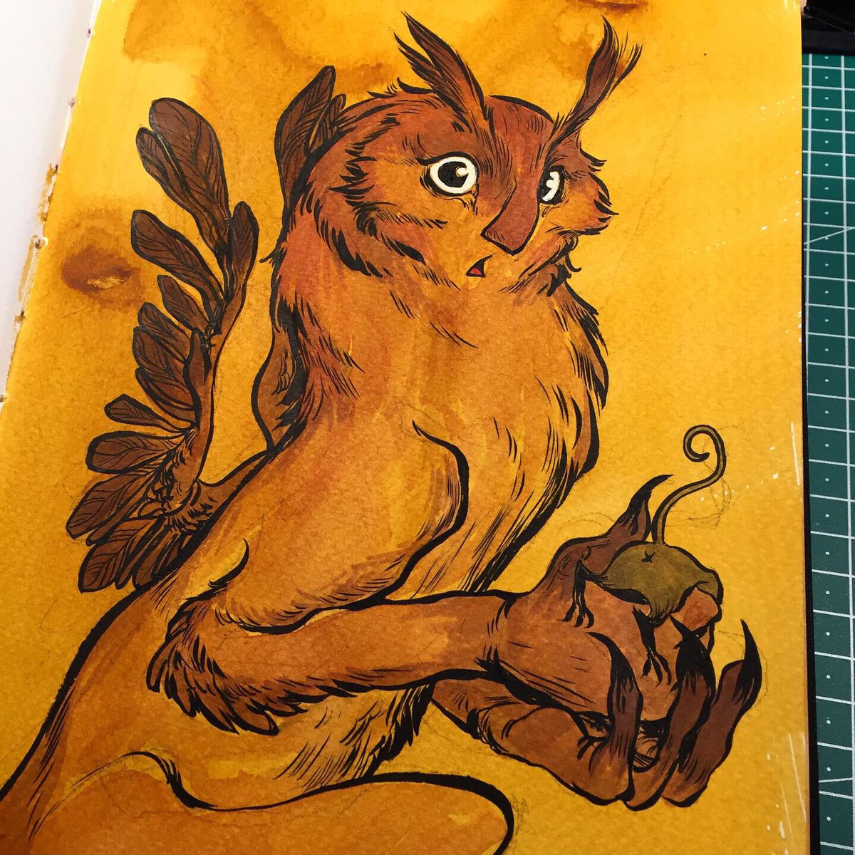 ...owlcat....or something 🤷🏻♀️ . . #inktober2020 #inktober #drawingink #creatures #morphing #creaturedesign #sketchbook #tonedpaper