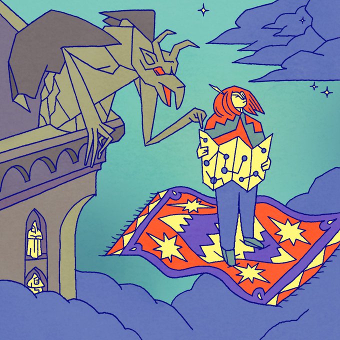haven't been posting for a while ^^ here's Zig and a gargoyle by the way #Inktober #inktober2022 (this one's not ink, obviously)