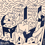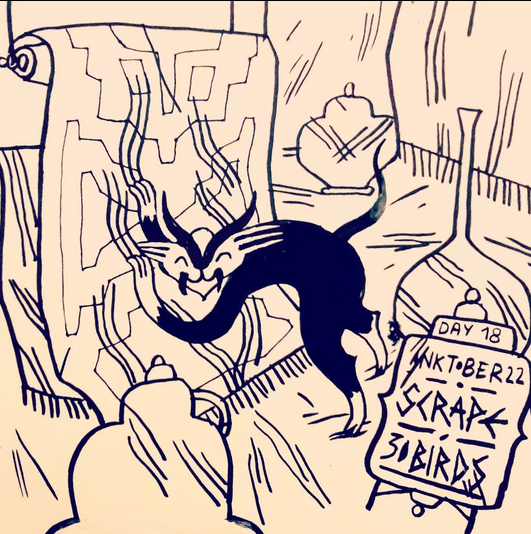 #inktober2022 day 20 "bluff" by Coline (also concept for special poker / tarot tile game with animals we're implementing in 30 Birds)
