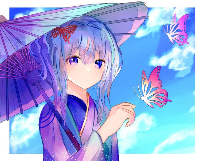 『蝶々🌂』 傘描くのが大変だった… ぜひ見て貰えると嬉しいです! #イラスト #絵描きさんと繋がりたい